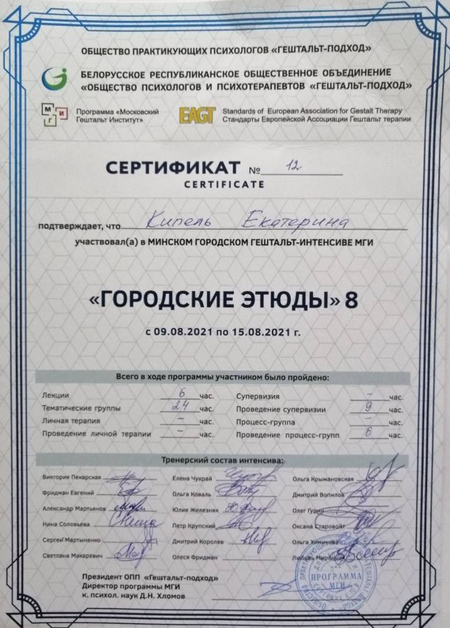 Практикующий психолог, гештальт-терапевт, супервизор.